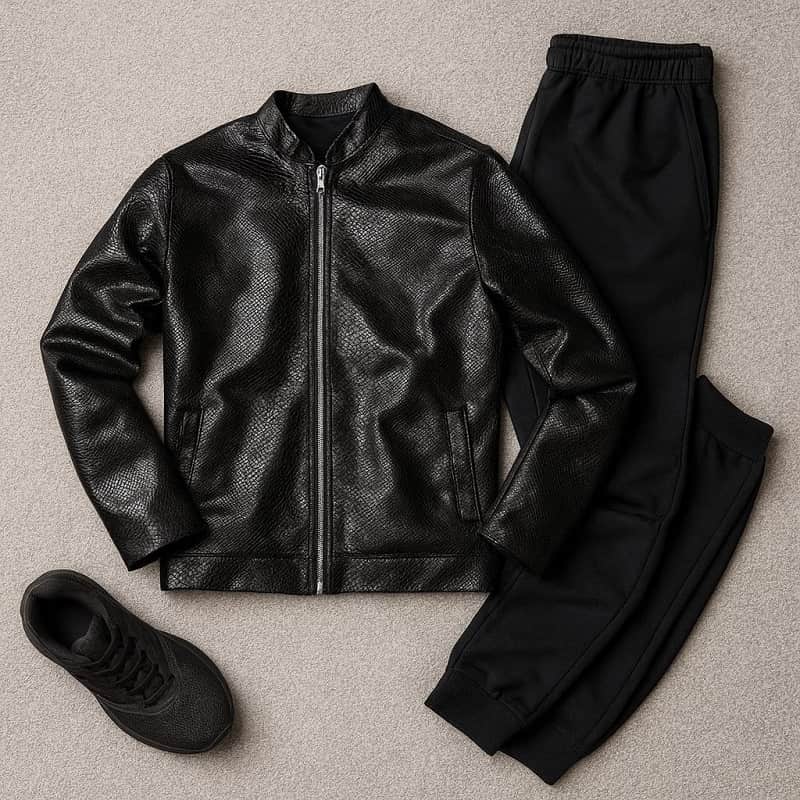 کاپشن چرم طرح پوست مار ساده مردانه مدل Yasan