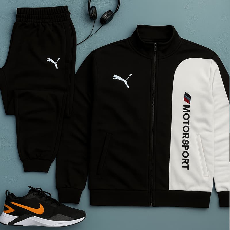 ست سوییشرت شلوار مردانه مشکی مدل MotorSport