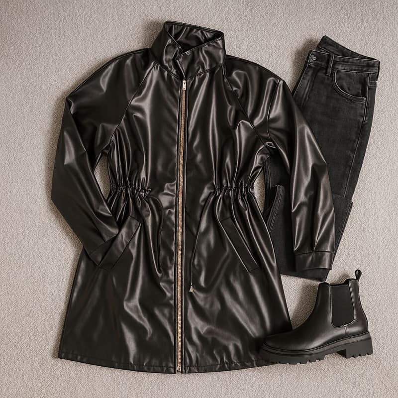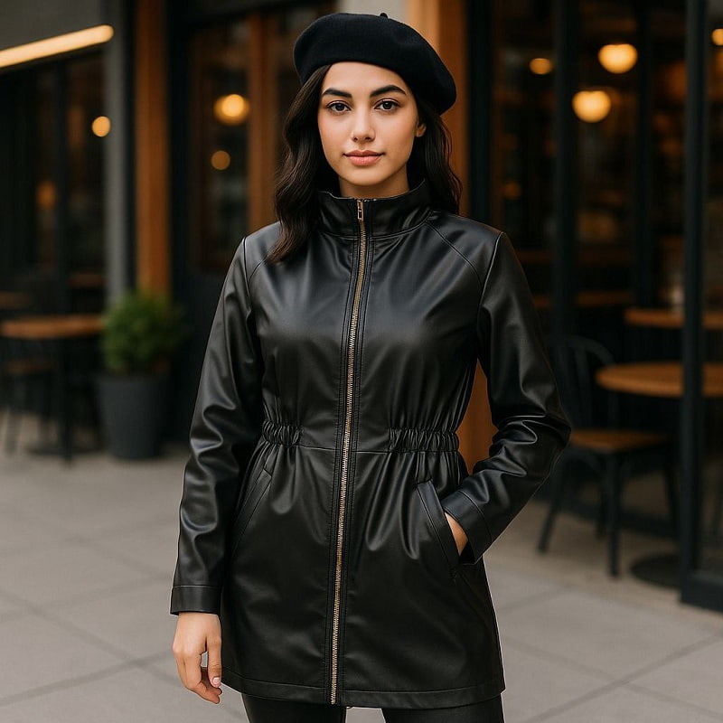 بارونی چرم مشکی زنانه مدل Beti